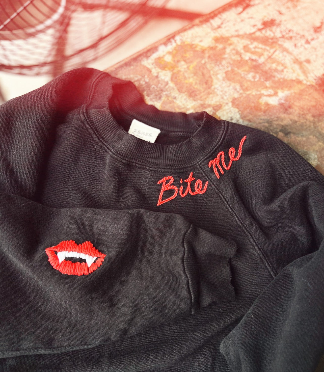 Bite Me Sweatshirt- Custom Hand Embroidery on Neckline(10 Colors)