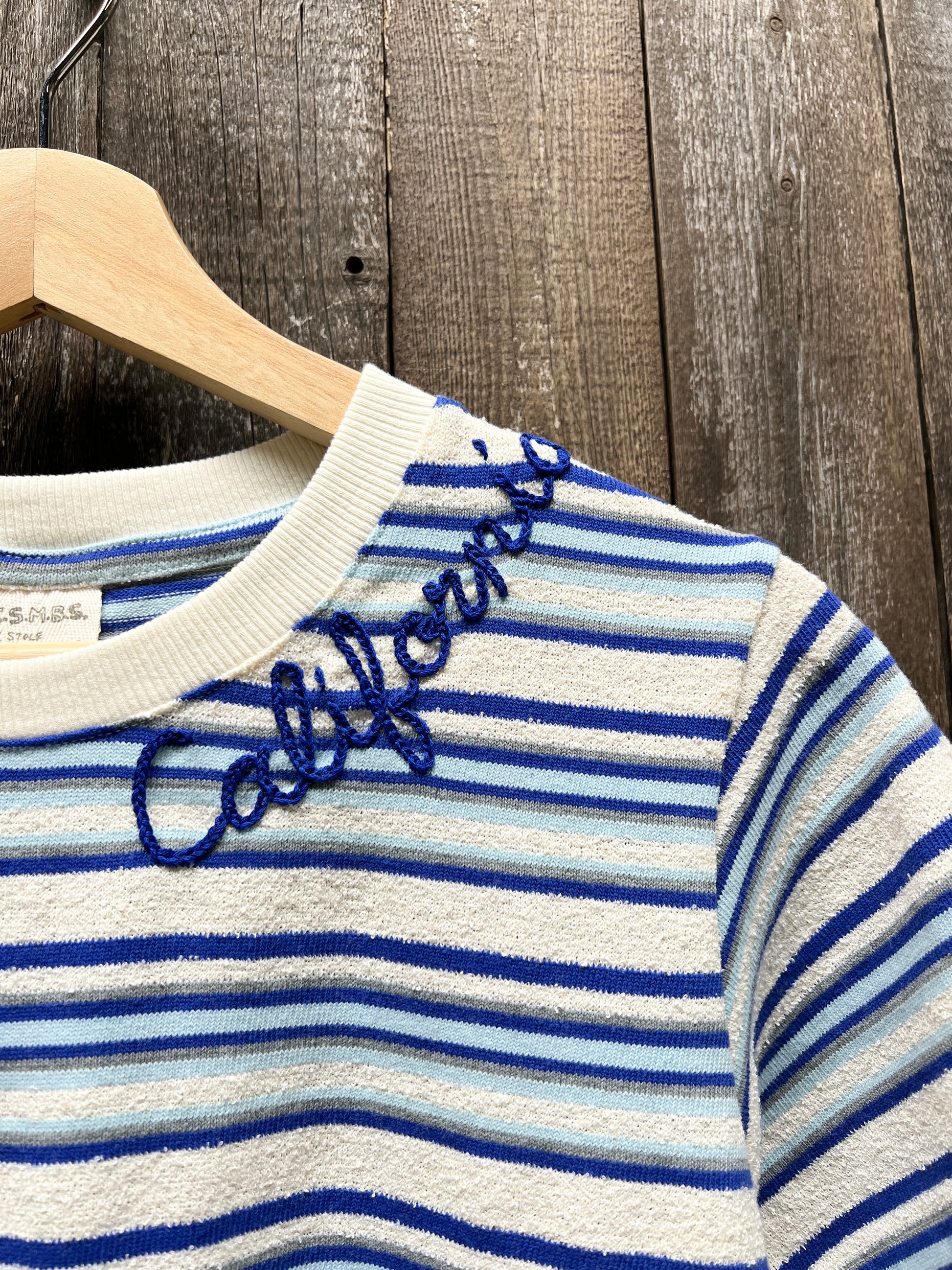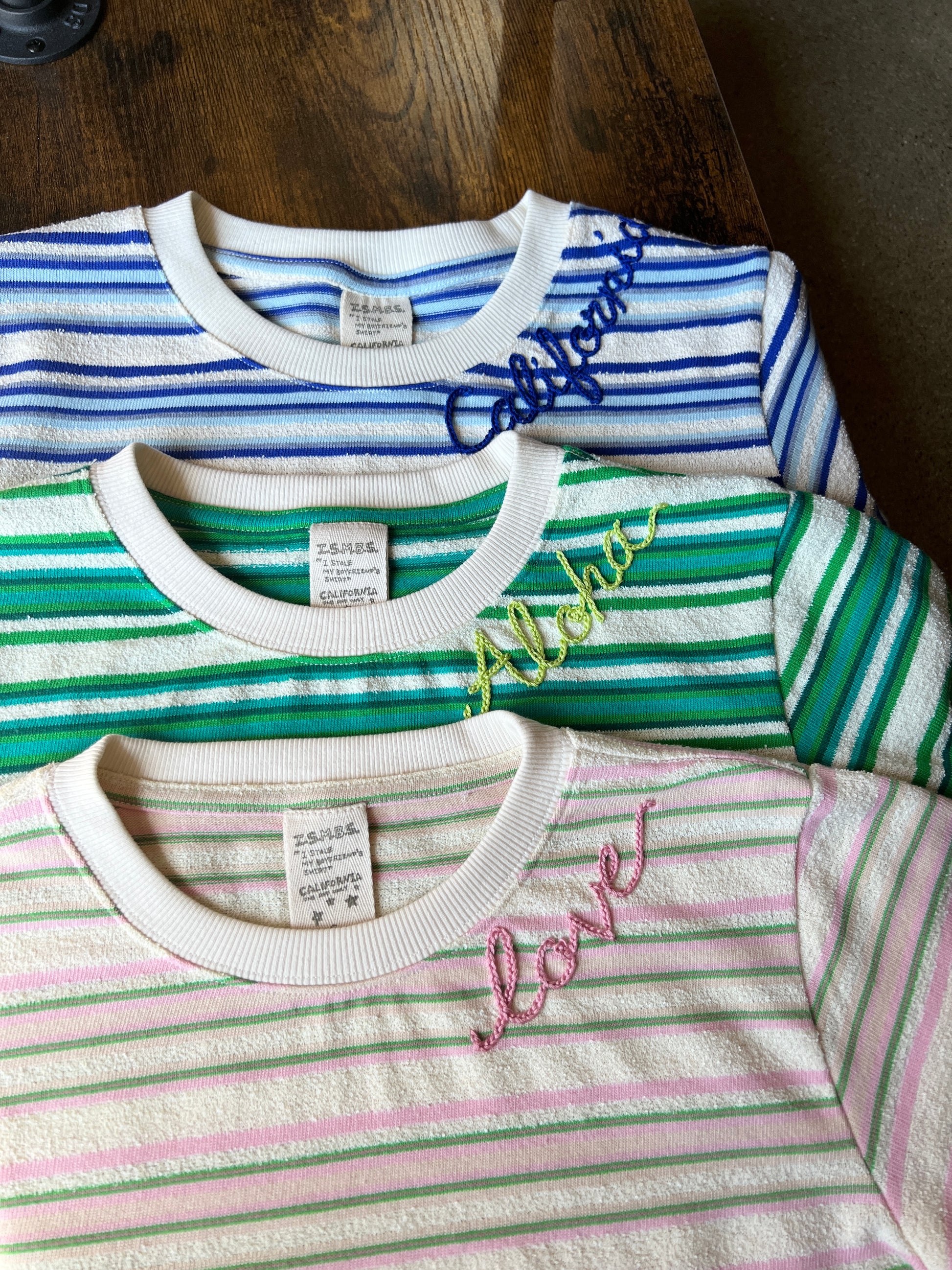 Make this perfect striped summer tee truly unique with your own words! This tee fabric gives a cool and comfy feel for your hot summer days. Our one-of-a-kind hand-embroidery adds an extra special touch, perfect for gifting to loved ones (or treating yourself!). Express yourself with these personalized tees. Select your word and thread color.
